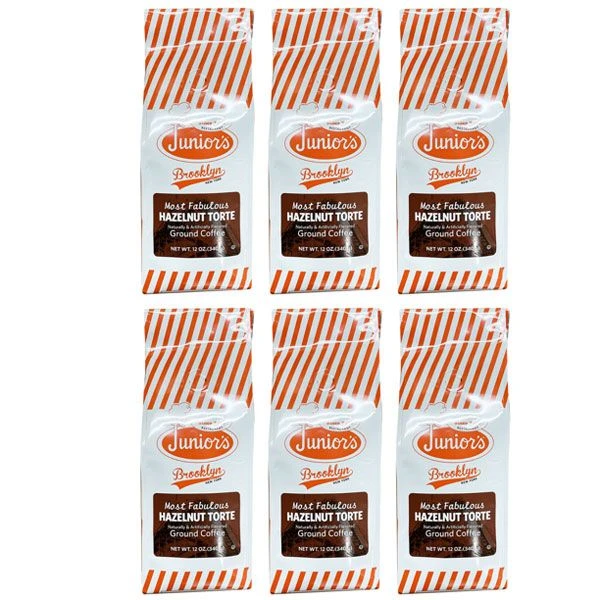 Junior’s Most Fabulous Hazelnut Torte, Medium Roast Ground Coffee, 6/12 oz bags
