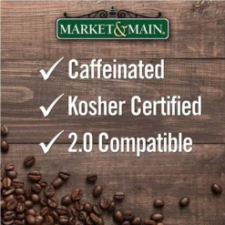 A blend of chocolate and creamy peanut butter! Market & Main brings that “feel good” coffee shop experience into your home with a full line of popular coffees in single serve cups. Market & Main is roasted to perfection, packaged immediately to ensure freshness and backed by their 100% unconditional guarantee! For use with all Keurig K-Cup Brewers and other single serve cup coffeemakers. Ingredients: Ground coffee with natural and artificial flavors